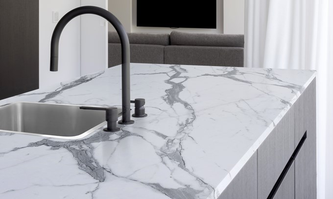 If you love a more rugged, industrial vibe for your benchtop, then Osmosis will defintely hit the mark. But what's quite unique about this low-silica composite stone is that the rough comes with the smooth! Despite appearances, it has a softly textured ...