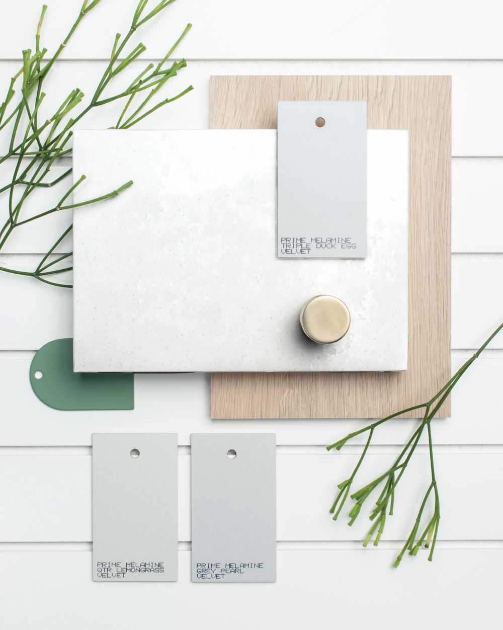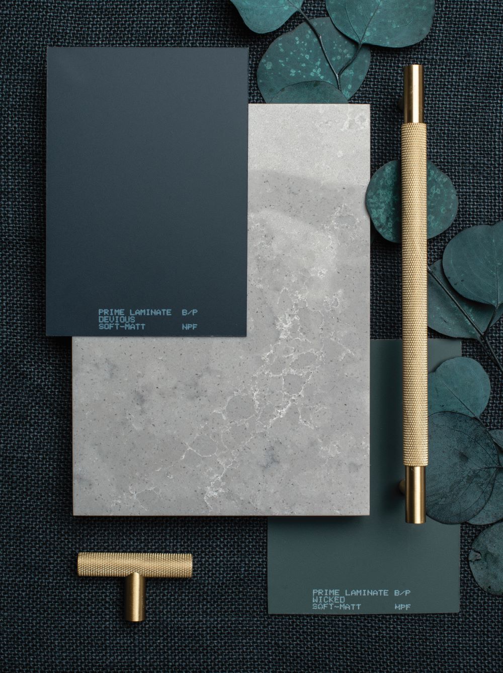 Gaia is a mid-toned grey that is complemented by dark blues, greens, black and white. Fumed Oak, Atmoss and Ironsand are melamine colours that go especially well with it. Our Prime soft-matt laminates in Devious or Wicked are also a fab combo when used for vertical cabinetry next to it.