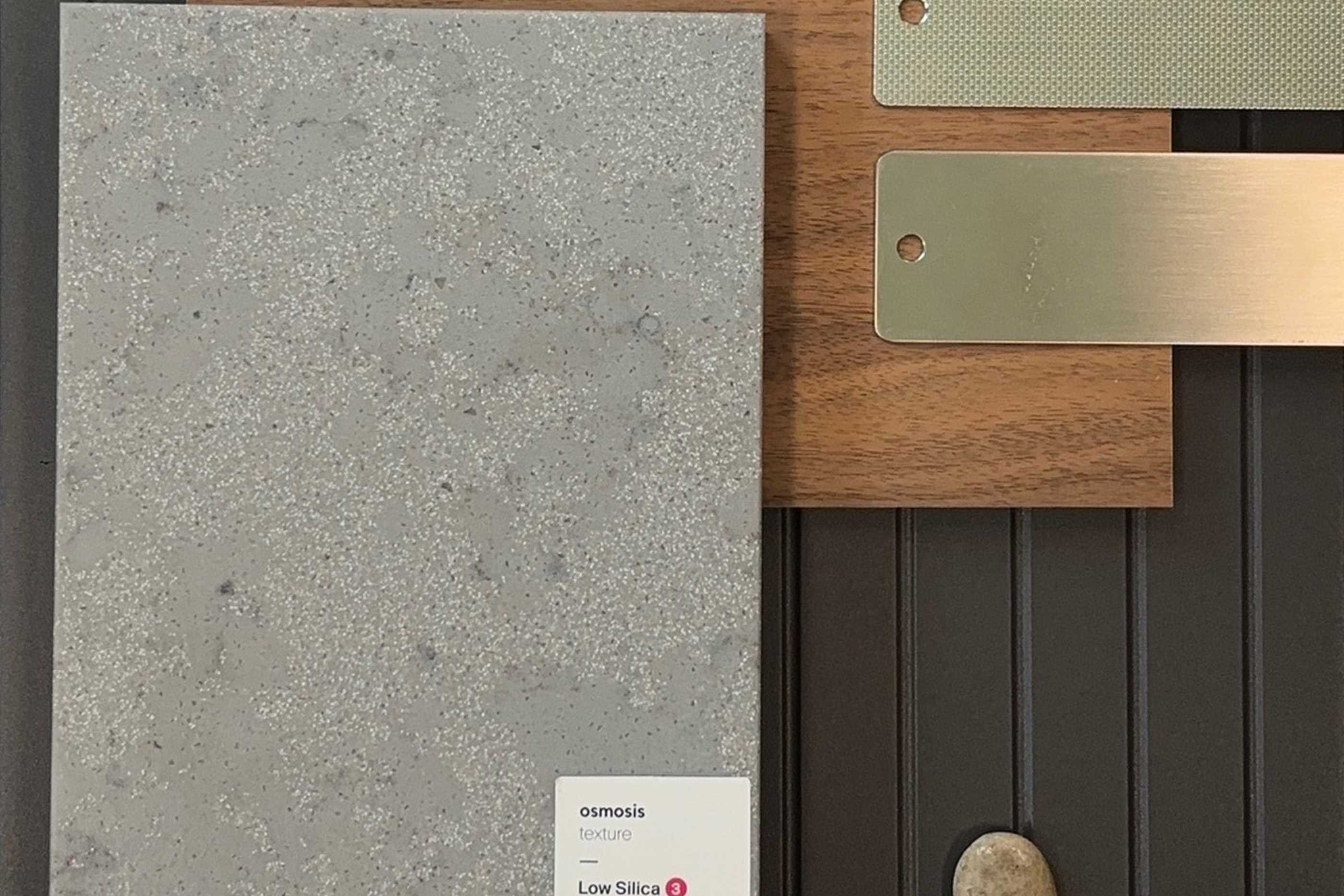 If you love a more rugged, industrial vibe for your benchtop, then Osmosis will defintely hit the mark. But what's quite unique about this low-silica composite stone is that the rough comes with the smooth!